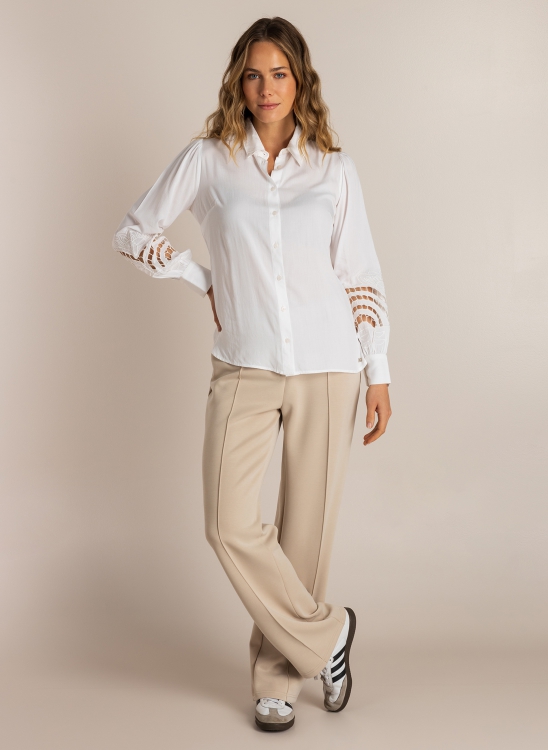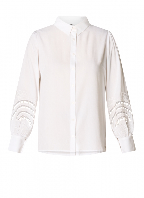 Een blouse die subtiel opvalt. De opengewerkte mouwen maken dit item uniek, terwijl de zachte viscose zorgt voor een luchtige, comfortabele fit. In rood, off-white of zwart — perfect voor dagen waarop je effortless chic wilt zijn.