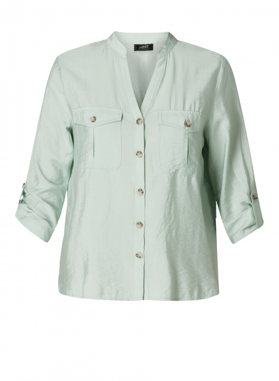 Deze blouse in zachte viscose-satijn voelt niet alleen heerlijk aan, maar is ook een fijn, tijdloos item. De praktische opgerolde mouwen met lussen en de klassieke knoopsluiting maken het een veelzijdige en stijlvolle keuze voor elke gelegenheid