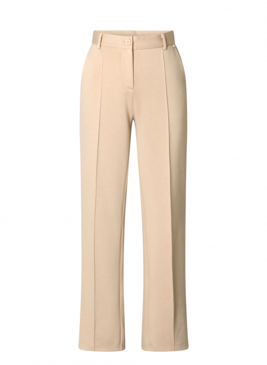 Comfort en klasse in één broek! Deze superzachte pantalon met rechte, wijde pijpen valt soepel langs het been en beweegt moeiteloos mee. De zichtbare naad geeft een mooi, lang silhouet. Verkrijgbaar in zwart en sand – klaar om overal bij te passen.
