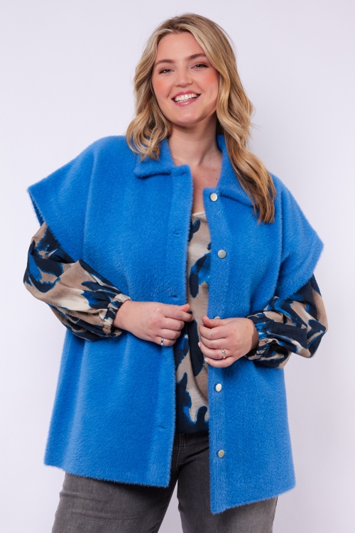 Een moderne laagjesfavoriet met een zachte touch. Het Laurena gilet heeft een comfortabele, teddyachtige structuur en korte mouwen voor een eigentijdse look. De kraag en knoopsluiting geven het item een stoere, maar vrouwelijke uitstraling, perfect om eindeloos te combineren.