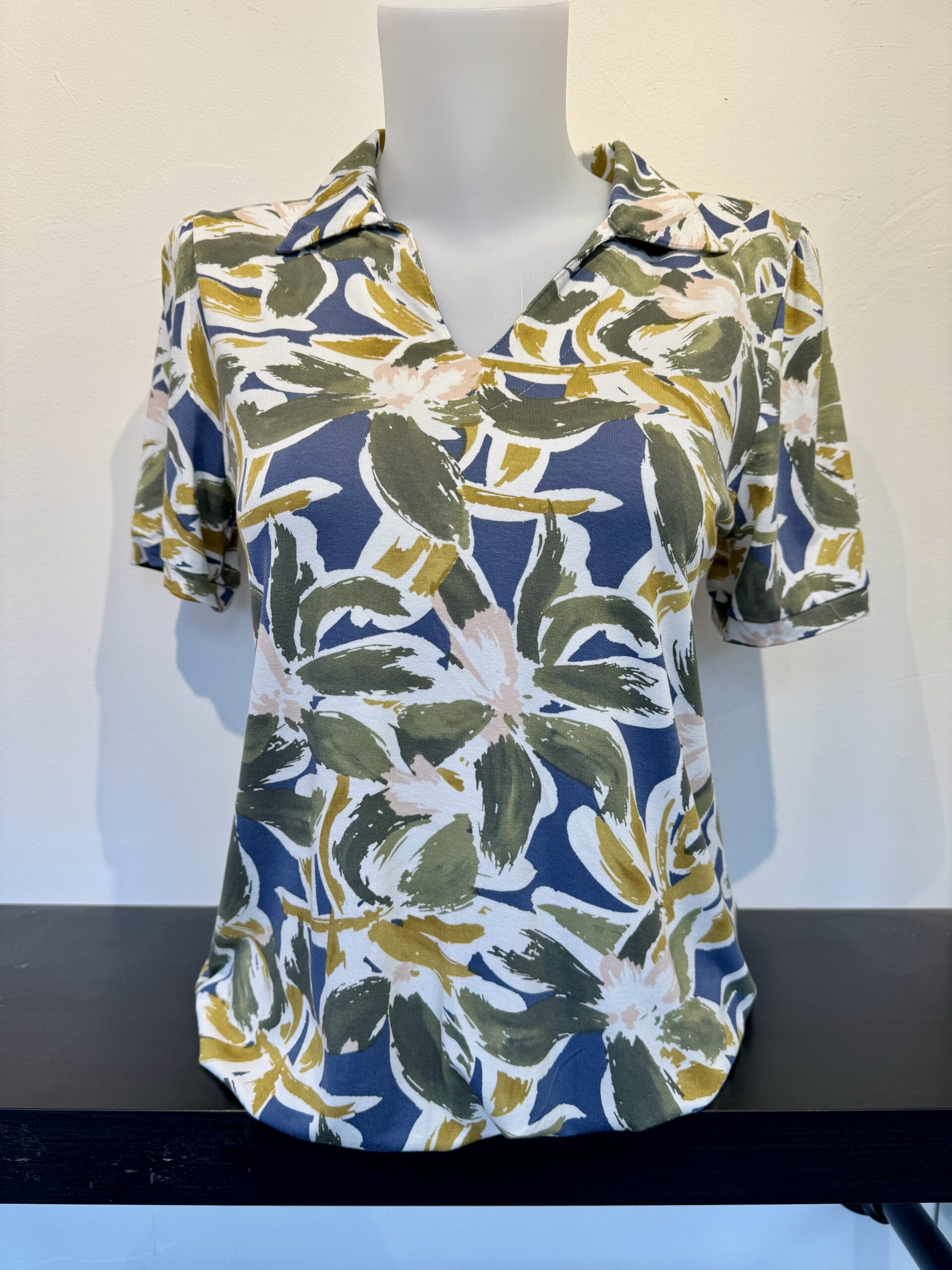 Het shirt heeft een elegante V-hals met kraag en korte mouwen, wat het een sportieve maar vrouwelijke uitstraling geeft. De soepele stof met stretch voelt zacht aan en draagt heerlijk comfortabel, waardoor het shirt ideaal is voor dagelijks gebruik.